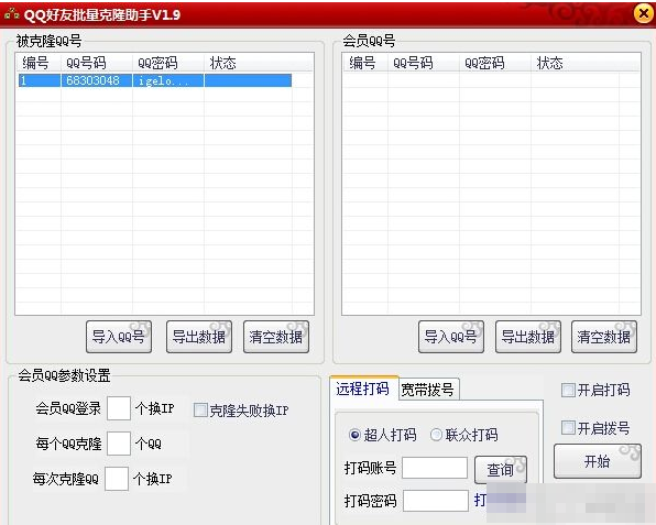 2、用户可以批量登录等待克隆的QQ号码,然后批量克隆到好友列表。