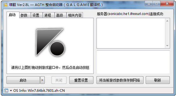 5、启动后,找到agth的窗口,然后在AGTH程序的下拉框选择和游戏文字对应的那个选项,如果没有找到证明此游戏需要特殊码或特殊参数。