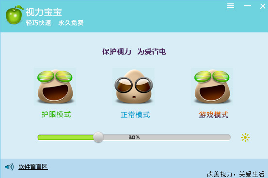 视力宝宝是一款支持屏幕变暗、变亮任意调节的电脑护眼软件。功能完善,有需要的可以来天空下载使用!