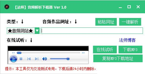 法师音频解析下载器是一款能够帮助用户解析下载心仪的音频文件,并支持解析Echo回声、网易、荔枝等音乐电台的实用工具。有需要的可以来此下载!