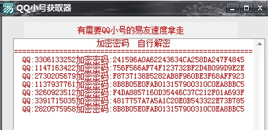 QQ小号获取器是一款可以帮助用户获取很多QQ账号和密码的工具。作用实在太多太多。有需要的可以来此下载!