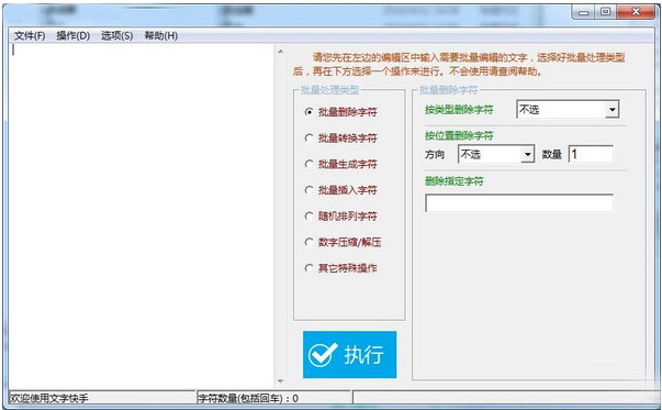 文字快手是一款支持批量删除、批量生成、数字压缩与解压等功能的文字处理软件。功能强大,欢迎下载使用!