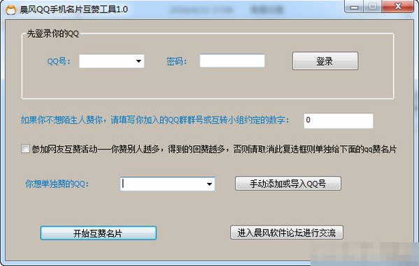晨风QQ手机名片互赞工具是一款能够帮助轻松给qq名片刷赞的实用工具。操作简单,有需要的可以来天空下载使用!
