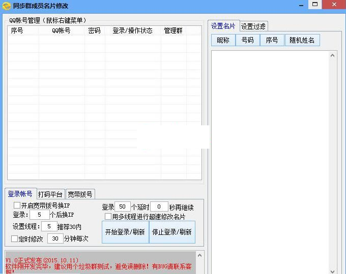 同步QQ群成员名片批量修改软件是一款登录QQ即可修改QQ群成员群名片的工具!支持多账号多线程修改,欢迎使用!