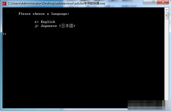 2、然后运行adobe专用删除器,有两种语言让你选择分别是英语和日语,输入【e】然后按回车开始。