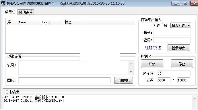 极客QQ空间说说批量发表软件是一款导入小号全自动发布,无需人工处理,支持带图片发表说说的实用工具。欢迎来天空下载使用!