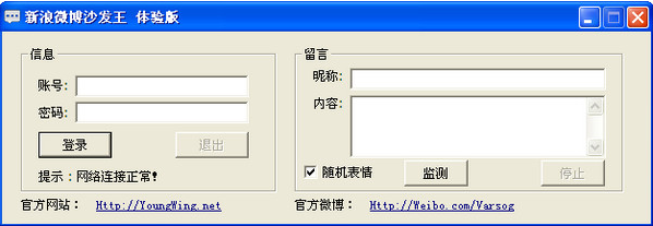 新浪微博沙发王是一款相当专业的新浪微博抢沙发软件。功能强大,可以让你的评论能够在第一时间被看到。欢迎下载使用!