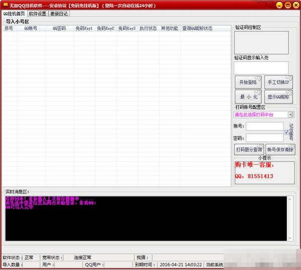 3.支持全自动无人值守操作,支持多种网络打码平台。