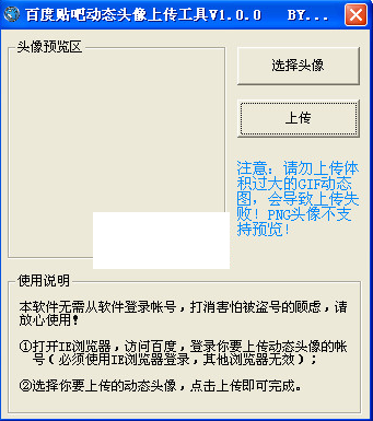 百度贴吧动态头像上传工具是一款可以帮助用户上传动态头像到贴吧的工具。无需从软件登录帐号,有需要的可以来天空下载使用!