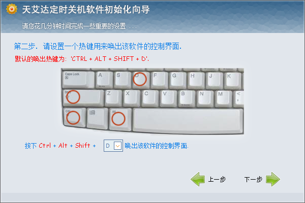 1. 唤出天艾达定时关机软件的管理界面, 默认的唤出快捷键为: Ctrl + Alt + Shift + D.