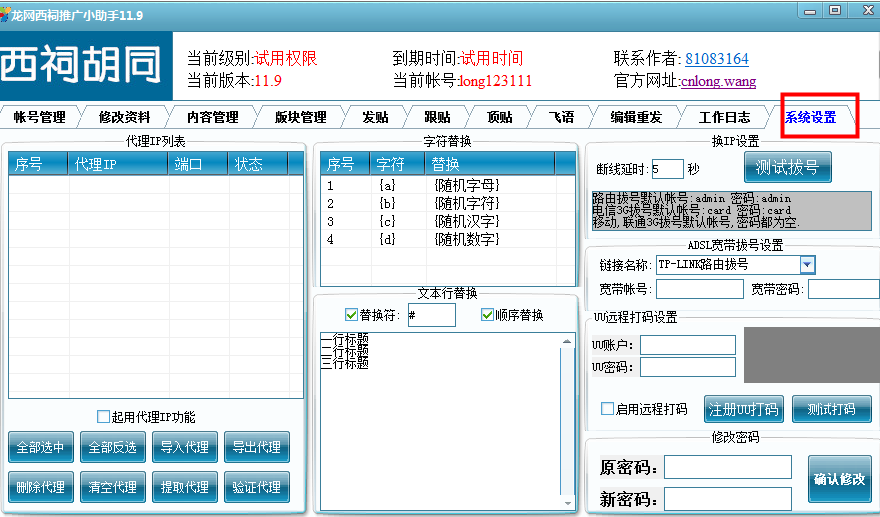 3、论坛发贴,跟贴,顶贴,发留言飞语,贴子重发等功能,多帐号多内容自动轮流发送,可发送本地图片。