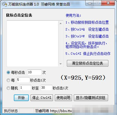 4、设定完后坐标会被记录,按开始执行,程序则自动开始连点.