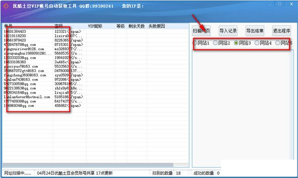 3.软件全自动扫描接口共享的优酷土豆帐号真假.