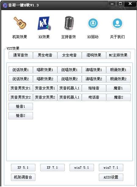 支持创新5.1、7.1声卡,支持闪避!免费为麦霸使用!集成众多效果!一键轻松搞定!告别繁琐机架!
