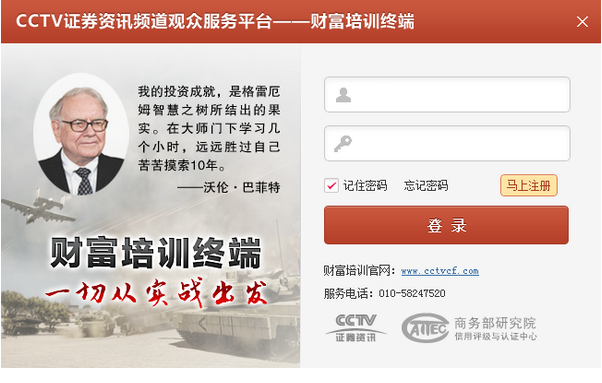 CCTV证券资讯培训终端,不急授人予鱼,更是授人以渔!从根本上改进投资者的投资理念,今儿改变投资行为没让每一个投资者盖头换面,成为市场赢家。