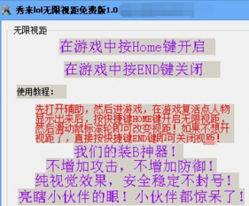 秀来lol无限视距辅助是一款专业的英雄联盟无限视距辅助工具。让你的在游戏中的视野更加的开阔,欢迎下载使用!