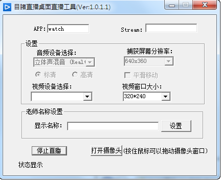 摄像头使用:点击打开摄像头可以打开默认选择的摄像头,可以在视频设备选择中更换其他摄像头,也可以视频窗口大小中选择摄像头视频的尺寸(或者直接拖动边框改变大小),拖动这个窗口到直播窗口内,那么就可以实现画中画的效果了。