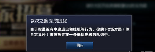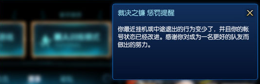 4、玩家完成5场惩罚时的裁决之镰警告。