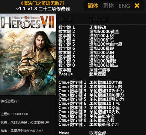 魔法门之英雄无敌7二十二项修改器是一款可以提供超强二十二项功能来帮助顽疾降低游戏难度的辅助工具。有需要的可以来天空下载使用!