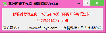 cf落叶断网瞬移是一款相当专业的CF辅助工具。支持断网瞬移等等功能。稳定奔放,有需要的可以来天空下载使用!