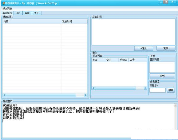 批量删说说、批量删留言、发说说@好友、发日志、好友留言。