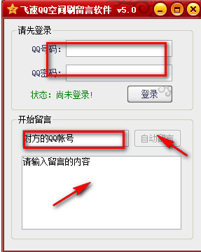2.输入需要刷留言的qq号,输入留言内容,点击自动留言即可.