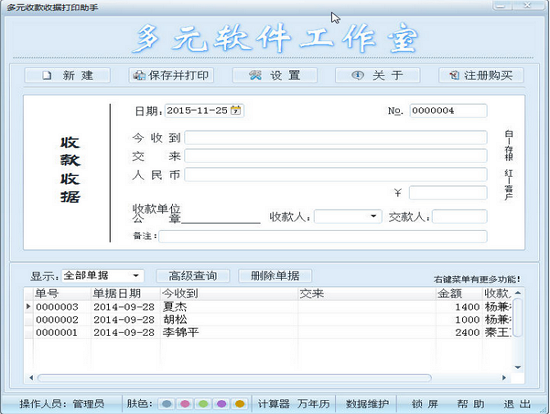 多元收款收据打印是一款支持打印设置、自动日期和收据序号等功能的收据打印软件。功能强大,欢迎下载使用!
