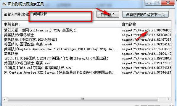 2.等待软件搜索完毕,点击磁力链接即可复制使用.