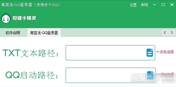 1、选择两个路径 一个是TXT文本的 一个是QQ的 TXT文本自己创建 在里面写上帐号密码 格式如下: