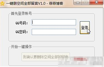 1、下载打开我们的工具后,登录你想要删留言的QQ帐号,同时你可以看到当前QQ空间的留言总数。本人还是那句忠告:空间留言清空后将不可恢复,请务必谨慎使用!!详见使用协议。