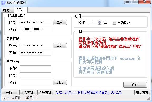 操作完一次之后,如果需要重新操作没有操作成功的,请点右下角“刷新数据”,然后点“开始”