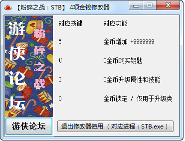 粉碎之战四项修改器是一款可以帮助玩家提供金币增加 +9999999、0金币购买钥匙、金币锁定等功能的作弊器。有需要的可以来天空下载使用!
