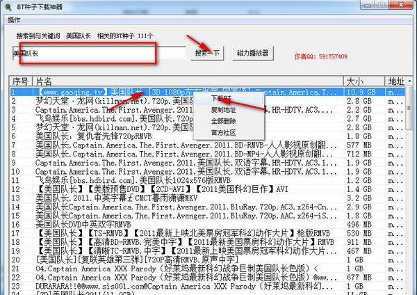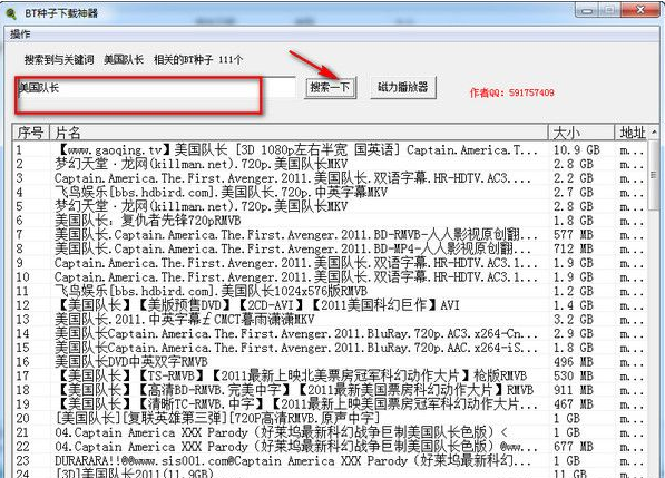 2.等待软件搜索完毕,双击磁力资源便可以获得下载地址.