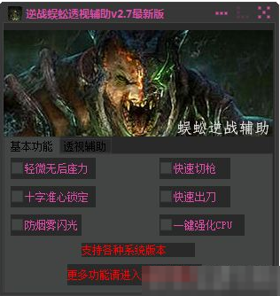 逆战蜈蚣透视辅助是一款由易语言编译完成的逆战透视辅助器。让你瞬间由菜鸟变成为高手,有需要的可以来此下载!