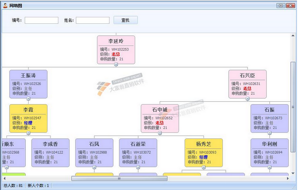 具备百万级的团队管理能力,能够快速查询和打印营销网络图。