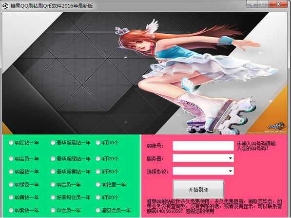 糖果刷钻刷Q币软件是一款针对QQ的刷钻刷Q币软件。该软件采用截取封包协议的,使得玩家可以真正刷到Q币、刷到会员QQ业务。而且软件是不收费的,刷取的过程中也不收取任何费用,承诺永久免费使用。