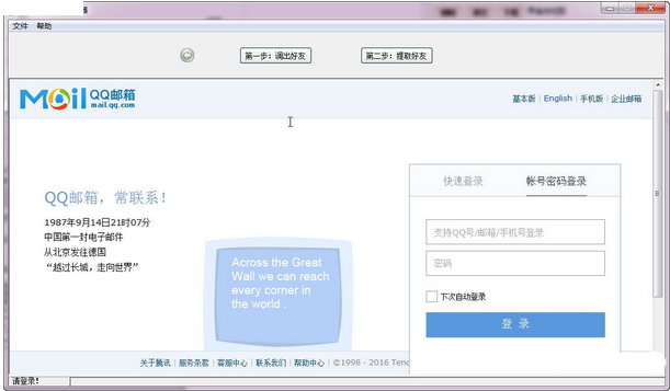 1、登录:启动软件后,根据界面提示输入你的QQ用户名和密码登录邮箱。如果你已经登录QQ,则只需点击“快速登录”。如果你不登录,则不能提取。
