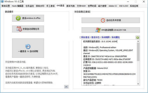 功能可以激活office16,win10等诸多版本,具体测试方知