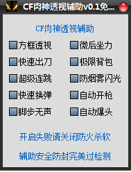 CF肉神透视辅助是一款支持透视自瞄等强大功能的辅助工具。带你在游戏中各种飞。有需要的可以来此下载使用!