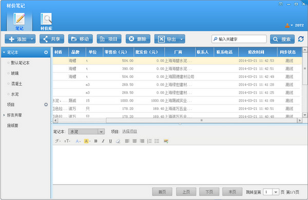 通过记录自己的材料价格笔记,用户可以建立自己专属的材料价格信息库。笔记数据全部存储在云端,提高了携带型的同时也确保了安全性。