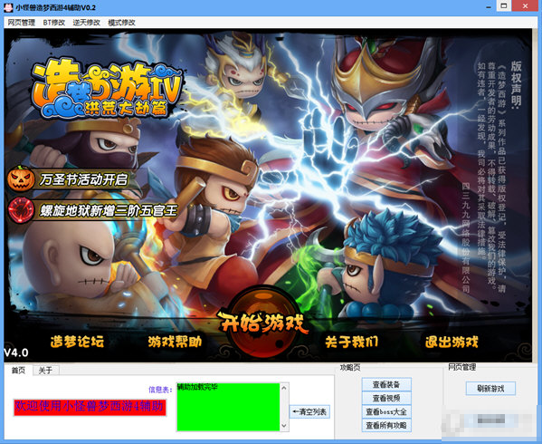 造梦西游4小怪兽辅助是一款支持逆天修改、模式修改、BT修改等功能的辅助工具。助你轻松游戏,欢迎下载!