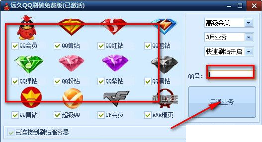2.输入想要刷钻的qq号,点击开通业务即可成功刷取.