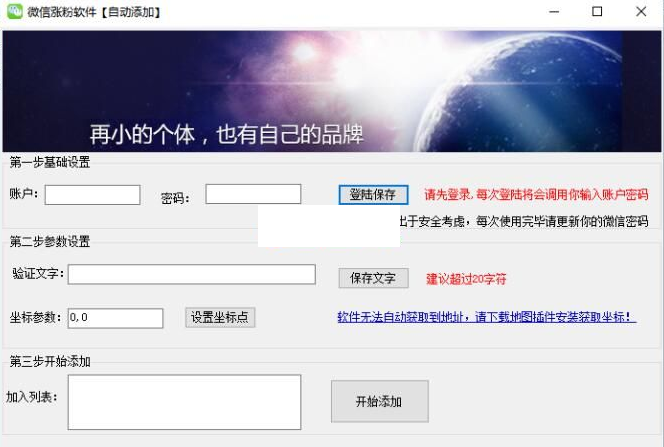 功能:输入坐标后自动添加,批量发送验证信息;发送后一般需要等待用户验证通过;一般通过率70%;