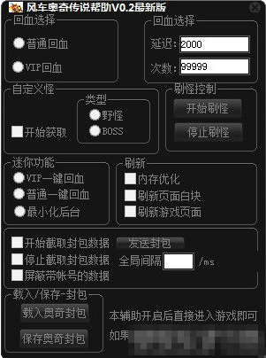 风车奥奇传说辅助是一款能够为玩家提供普通回血、VIP回血、自定义怪、刷怪控制等实用功能的强大工具。助你轻松游戏,欢迎下载!