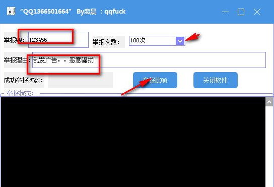 1.下载并运行软件,输入需要举报的qq号以及举报次数.