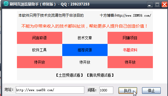 刷网页访问量工具是一款只需要在这个软件上输入相关的地址,就可以在线刷浏览量的工具。有需要的可以来天空下载使用!