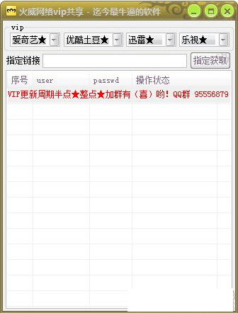 火威网络VIP账号共享器是一款能够帮助用户免费获取迅雷、爱奇艺、乐视等视频网站会员账号的工具。有需要的可以来此下载!