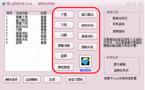 首先需要结合自己的喜好来选择整人功能,支持多选,同时运行;