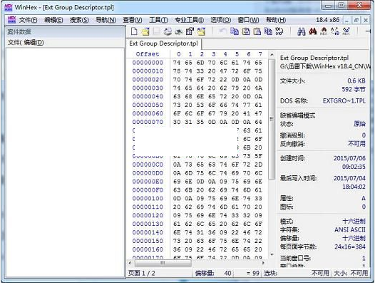 你可以利用选项,进行编辑模式的设置,如设置16进制模式,文本模式等等。