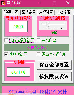 皇子锁屏是一款功能强大的电脑锁屏软件。并且支持设置密码及锁屏界面图片,有需要的可以来此下载!